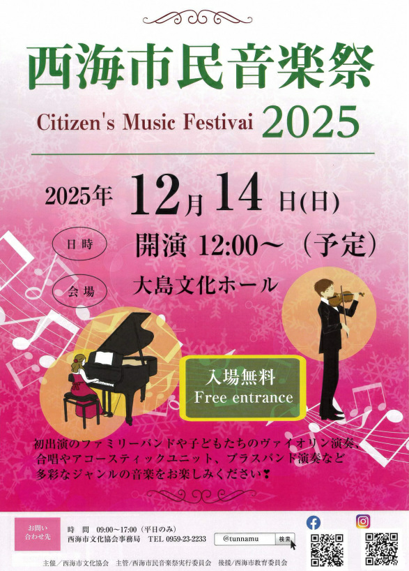 2025年12月14日(日)に西海市民音楽祭が開催されます。