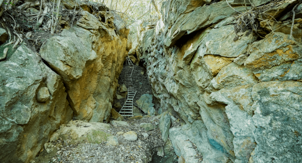 特に印象的なのが「第6工房」と呼ばれる場所。高さ約6m・長さ約60mにもわたる岩壁一面から、素材を切り出した痕跡が残っているといいます。